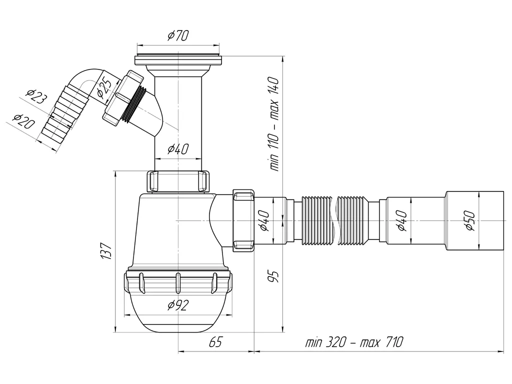![CDATA[Сифон АНИ ГРОТ Кухня 1 1/2"*40 с отводом под стиральную машину с гибкой трубой 40х40/50, горловина литая.]]