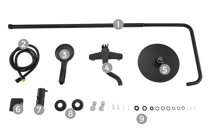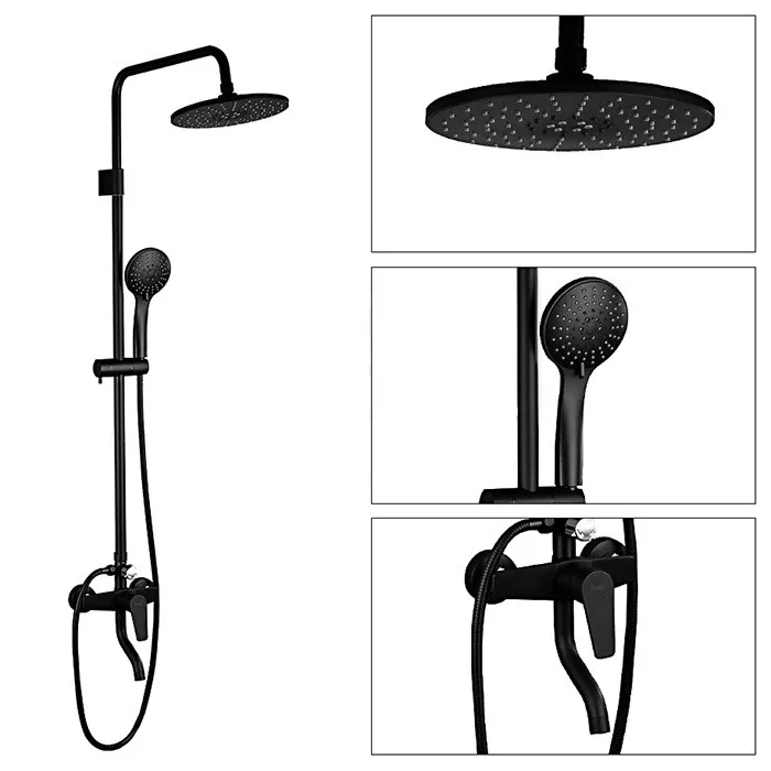 Душева система Frap F2429, вилив - перемикач на лійку, 5 режимів, чорний