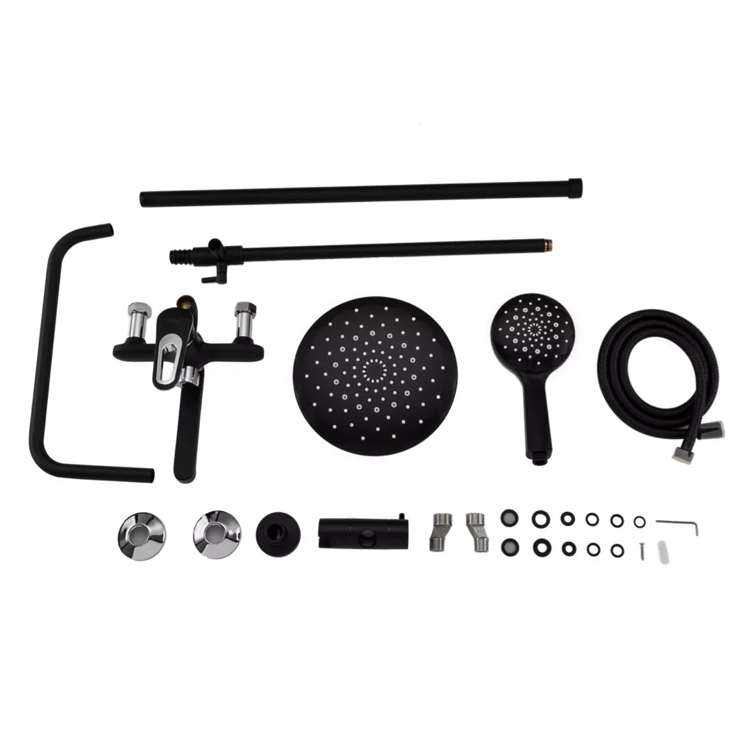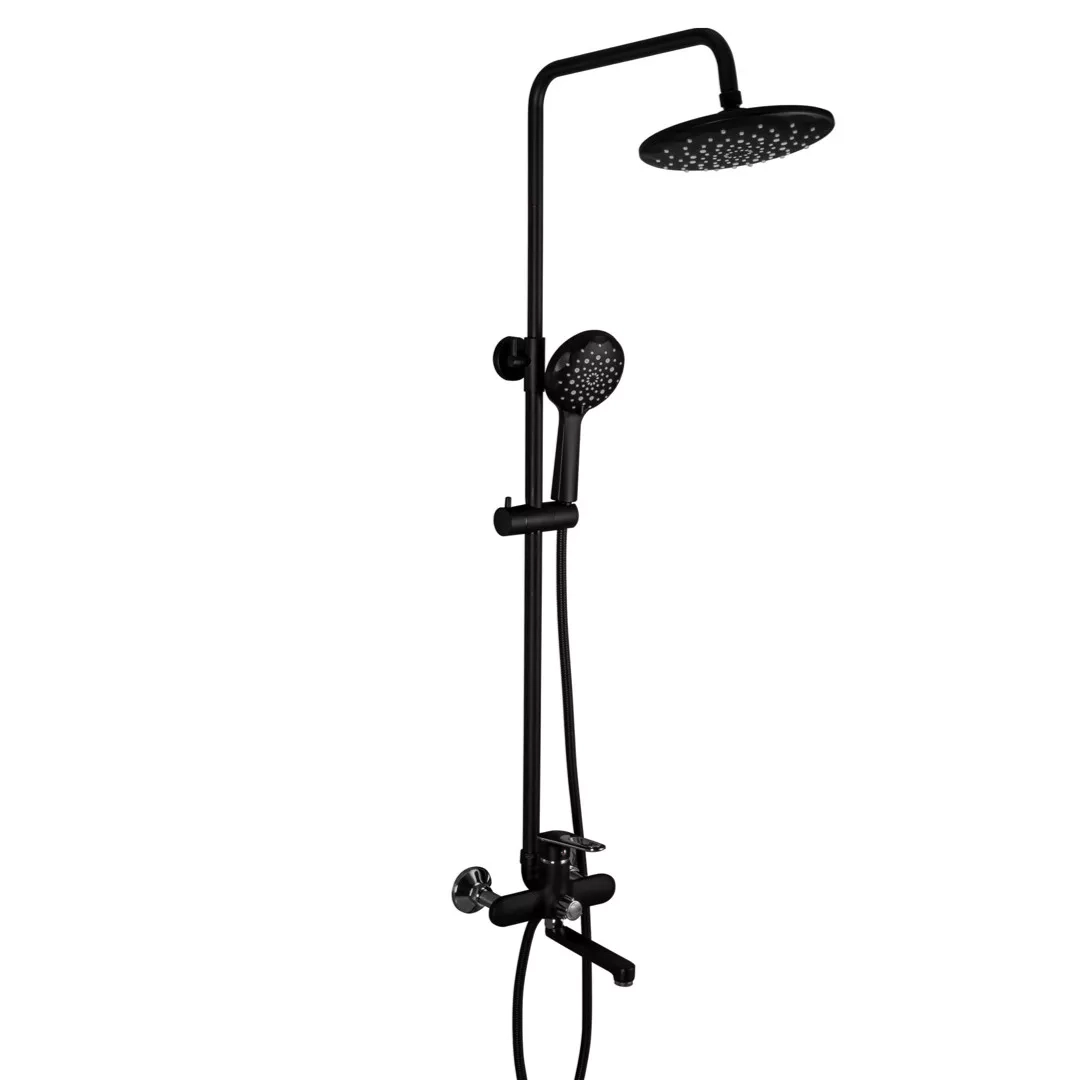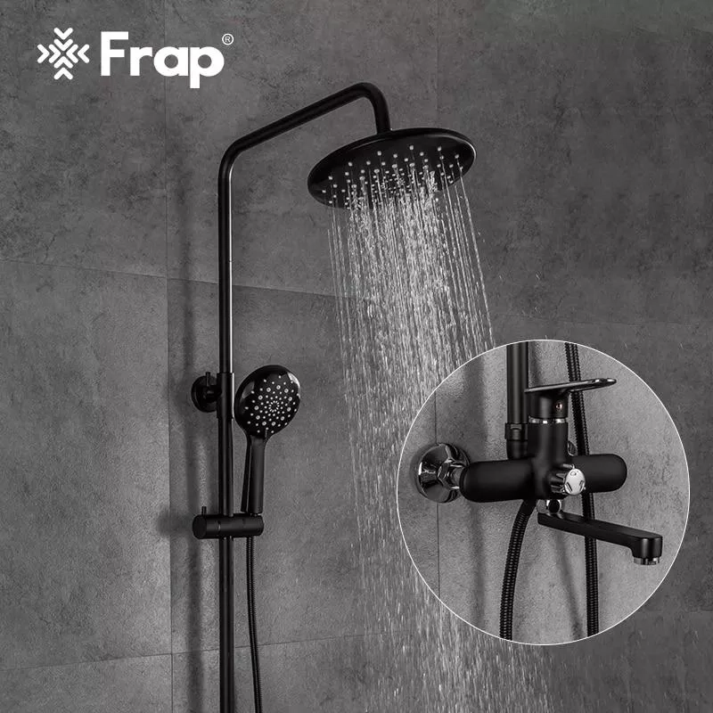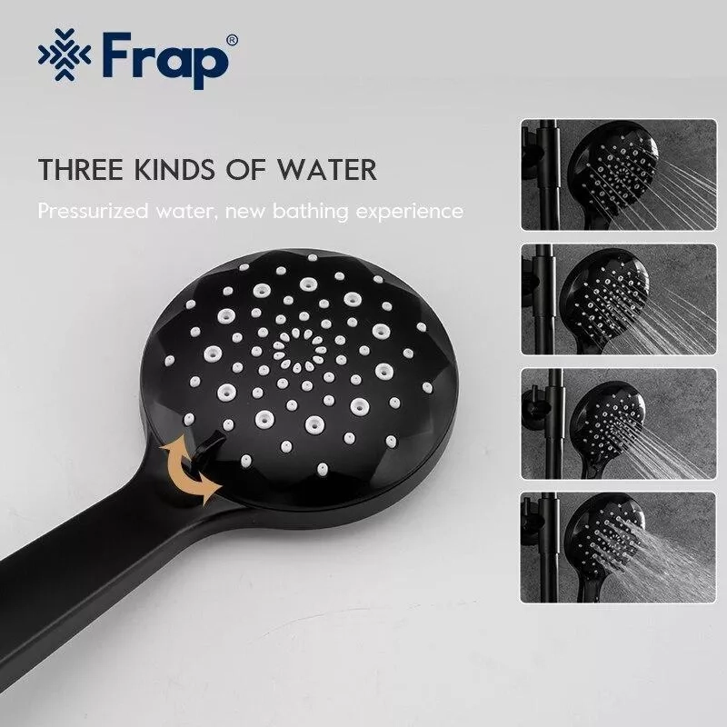 Душева система Frap F2449-6, поворотний вилив - перемикач на лійку, 3 режими, чорний/хром