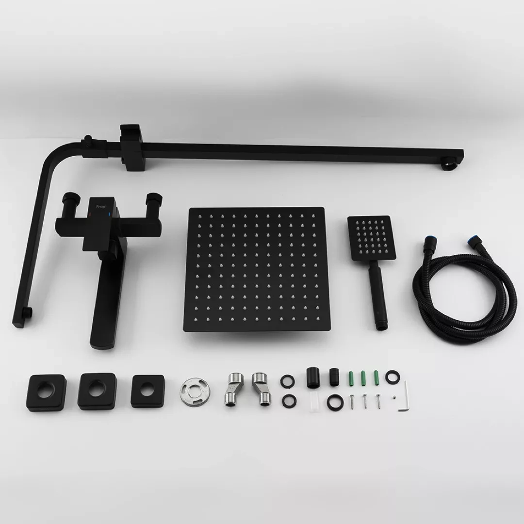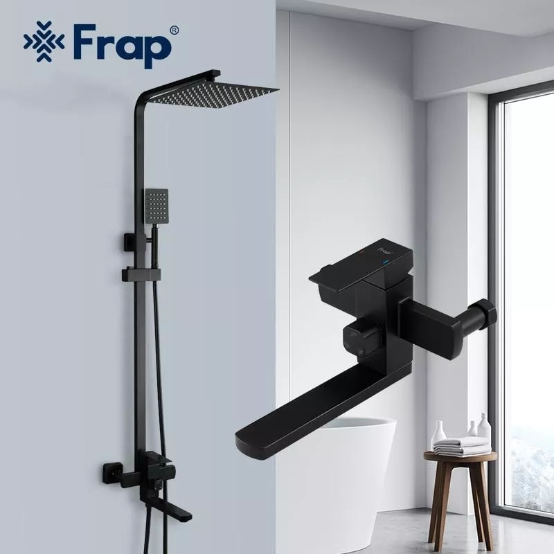 Душева система Frap F24802-6, вилив - перемикач на лійку, 1 режим, чорний