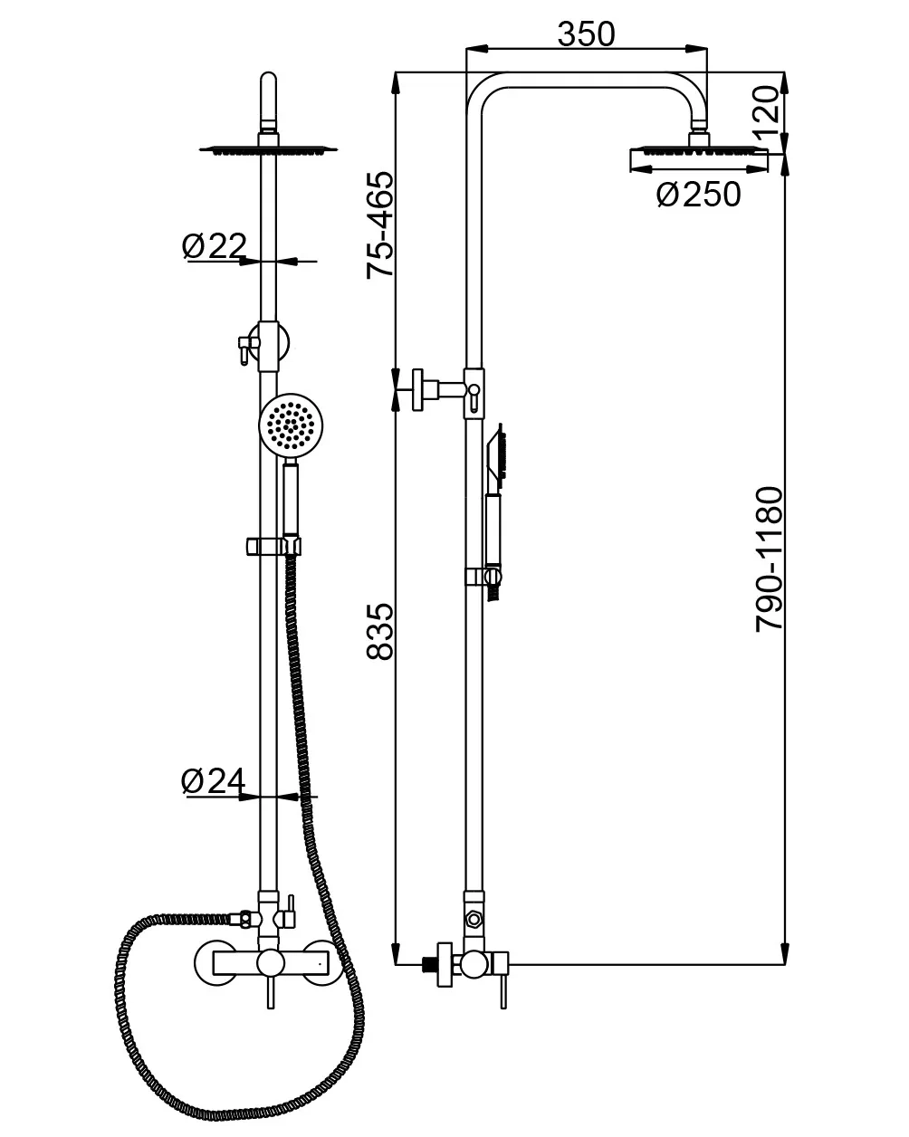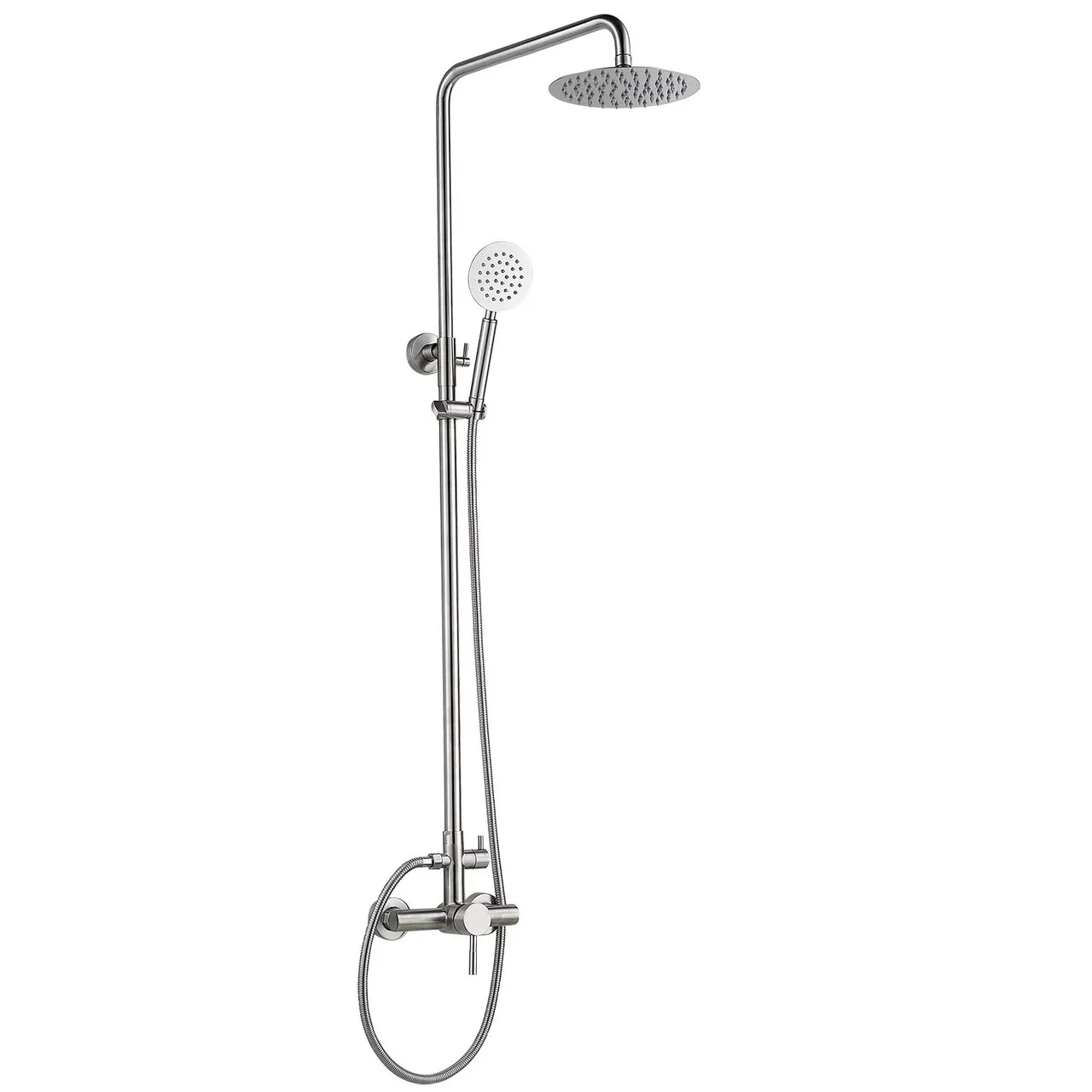 ![CDATA[Матеріал: харчова нержавіюча сталь SUS304. Тип корпуса: одноважільний, перемикач із звуковою фіксацією (душ/лійка). Комплектація: вилив, кріплення, шланг для душа 150 см з лійкою, стійка для душу 70 см (кріплення) витяжна труба (125см), лійка троп. 200мм.]]