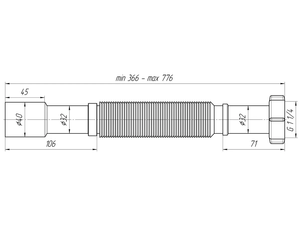 Гнучка труба ANI-plast K207, 1 1/4" x 32/40 (420-820 мм)