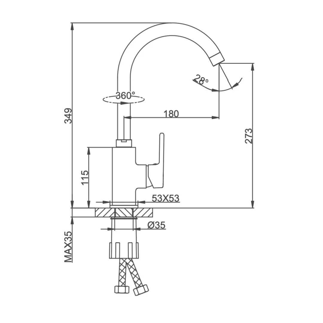 Корпус кухонного змішувача Frap F4460 під гнучкий вилив, хром
