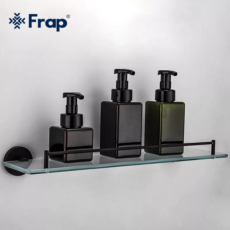 Полиця скляна Frap F30207, нержавіюча сталь, 500 мм, чорний