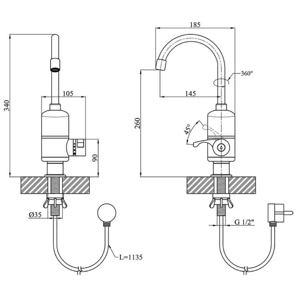 ![CDATA[Проточний водонагрівач для кухні з поворотним виливом. Корпус виготовлено з ABS пластику білого кольору. Живлення АС 220-240В, 50Гц. Тен потужністю 3кВт. Температура нагріву 30 - 65°C. Тиск в системі від 0.5 до 6 бар. Індикація роботи за допомогою світлодіода. Клас захисту - ІРХ4. Встановлення на мийку, фіксація прижимною гайкою, гідравлічне з'єднання - зовнішня різьба 1/2". В комплекті кабель 1.2 метри з вилкою європейського зразка. Гарантія 1 рік.]]