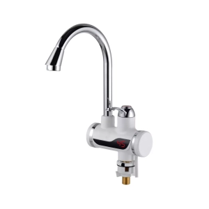 ![CDATA[Проточний водонагрівач для кухні з поворотним виливом. Корпус виготовлено з ABS пластику білого кольору. Живлення АС 220-240В, 50Гц. Тен потужністю 3кВт. Температура нагріву 30 - 65°C. Тиск в системі від 0.5 до 6 бар. Індикація температури за допомогою дисплея. Клас захисту - ІРХ4. Встановлення на мийку, фіксація прижимною гайкою, гідравлічне з'єднання - зовнішня різьба 1/2". В комплекті кабель 1.2 метри з вилкою європейського зразка та ПЗВ. Гарантія 1 рік.]]