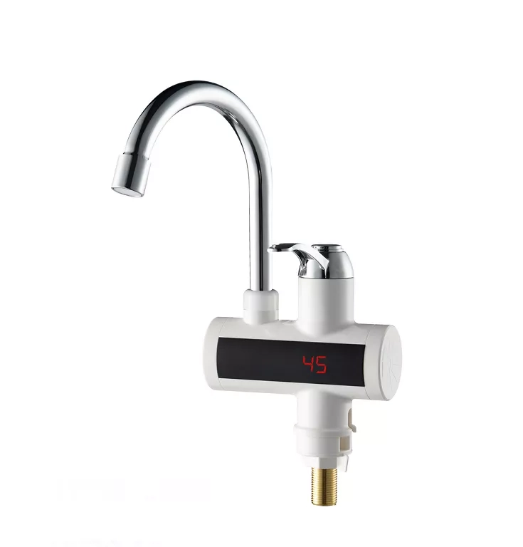 ![CDATA[Проточний водонагрівач для кухні з поворотним виливом. Корпус виготовлено з ABS пластику білого кольору. Живлення АС 220-240В, 50Гц. Тен потужністю 3кВт. Температура нагріву 30 - 65°C. Тиск в системі від 0.5 до 6 бар. Індикація температури за допомогою дисплея. Клас захисту - ІРХ4. Встановлення на мийку, фіксація прижимною гайкою, гідравлічне з'єднання - зовнішня різьба 1/2". В комплекті кабель 1.2 метри з вилкою європейського зразка. Гарантія 1 рік.]]
