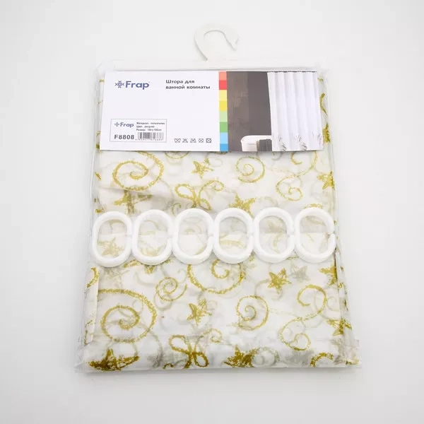 Шторка для ванної і душа Frap F8808, поліетилен, 180 x180 см, жовтий