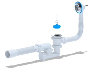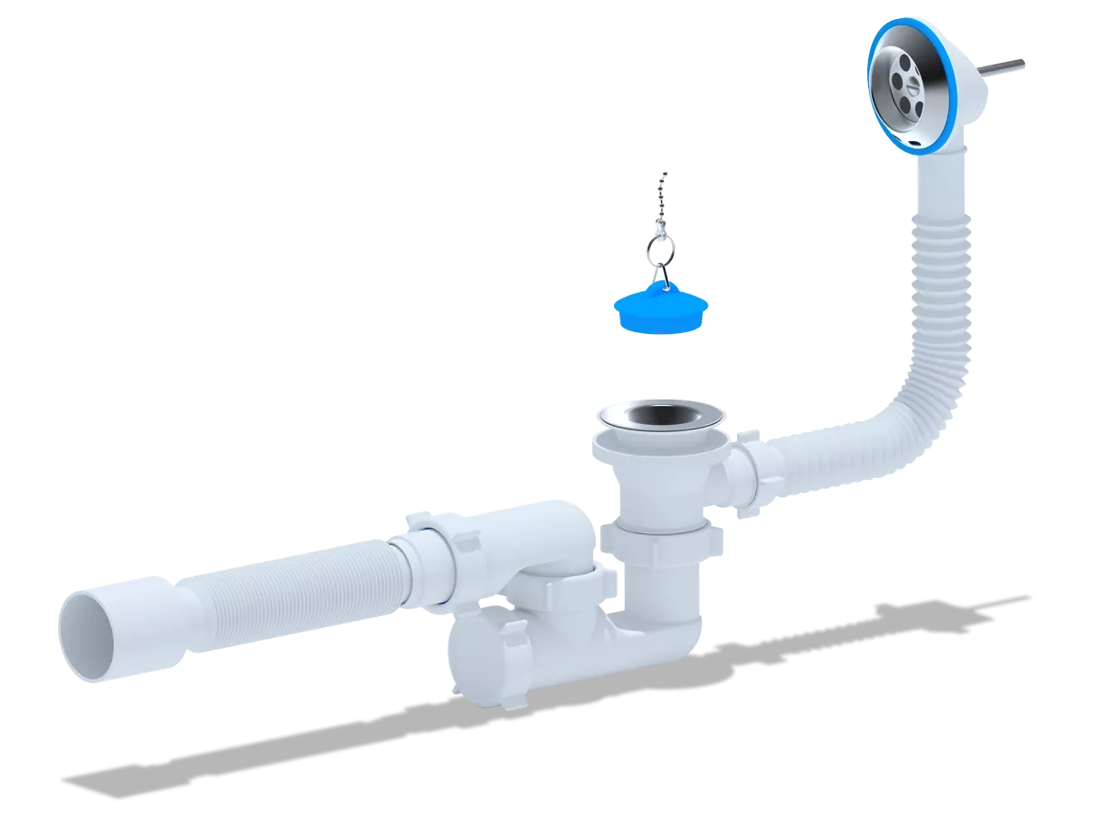 Сифон для ванни ANI-plast Е256 регульований з випуском 1 1/2" x 40, з переливом, з гнучкою трубою 375 x 40/50