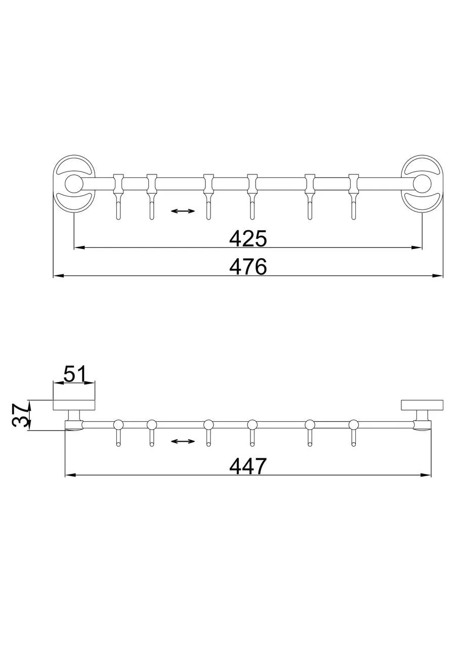 Вішалка Frap F1915-6 на 6 рухомих гачків 450 мм, хром
