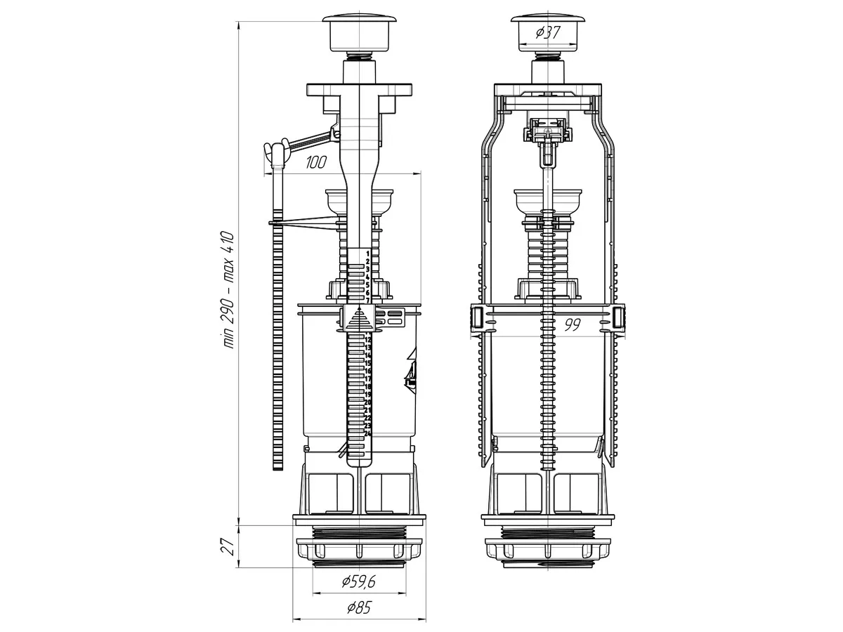 ![CDATA[Сливной механизм бачка унитаза металлизированная кнопка с одним режимом слива эконом]]