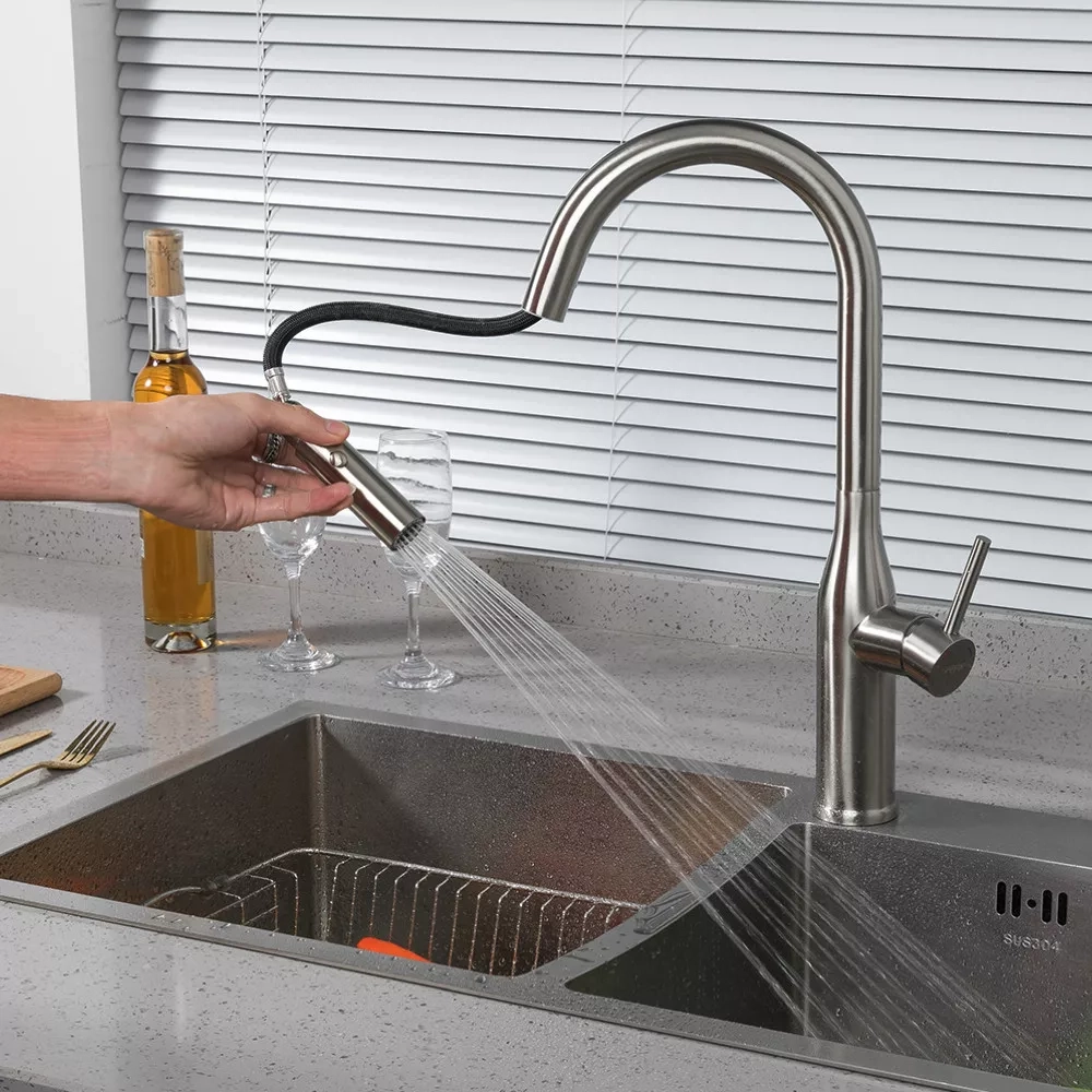 Змішувач для кухні GAPPO G4398-45 з висувним виливом, 2 режими, сатин