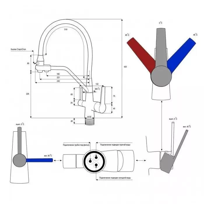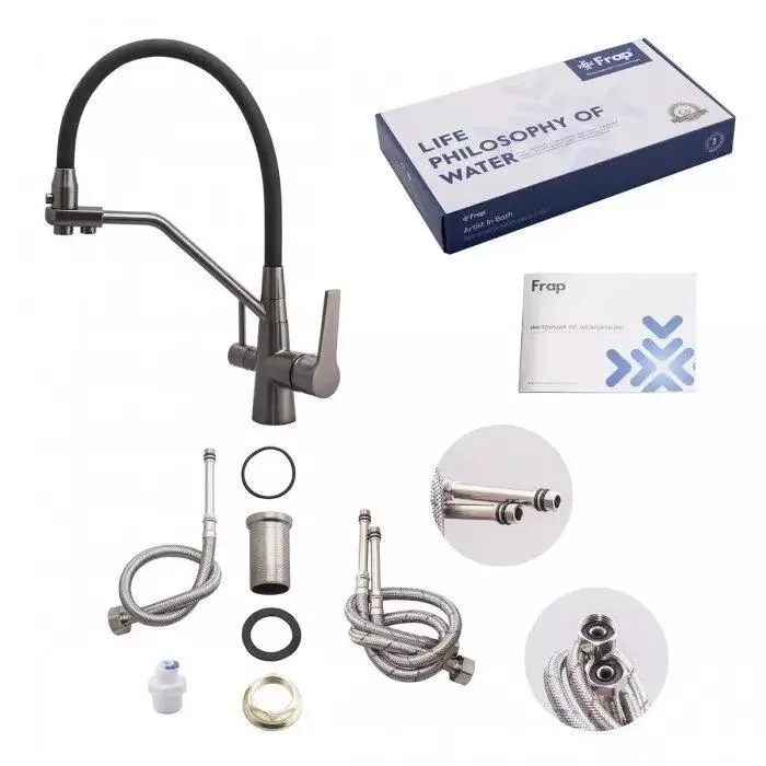 Змішувач для кухні на дві води Frap F4374-15, сірий