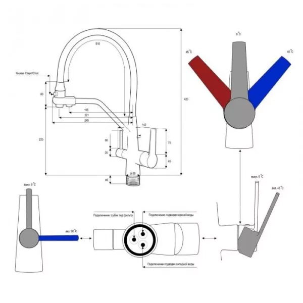 Змішувач для кухні на дві води Frap F4374, сірий/хром