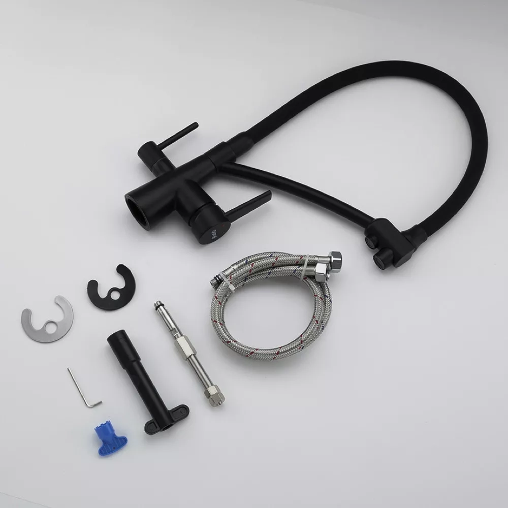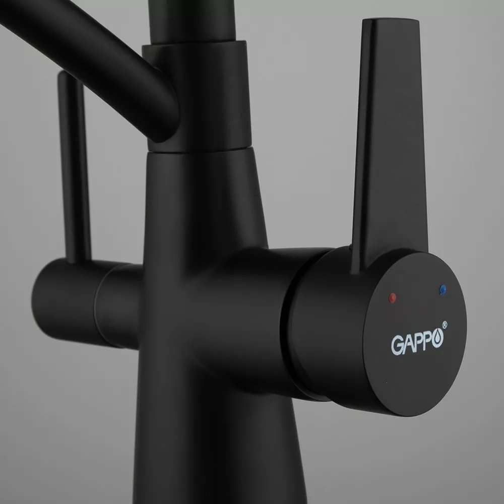 Змішувач для кухні на дві води GAPPO G4398-16 з гнучким виливом, чорний