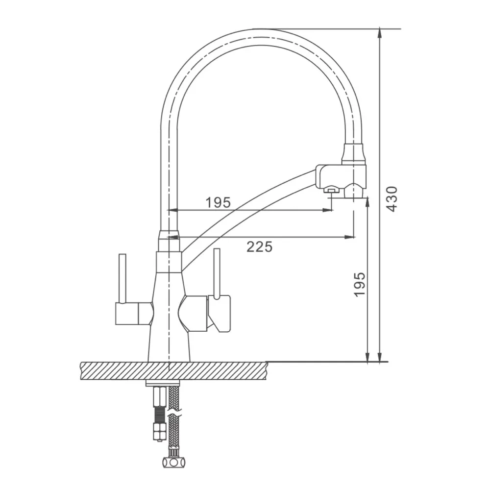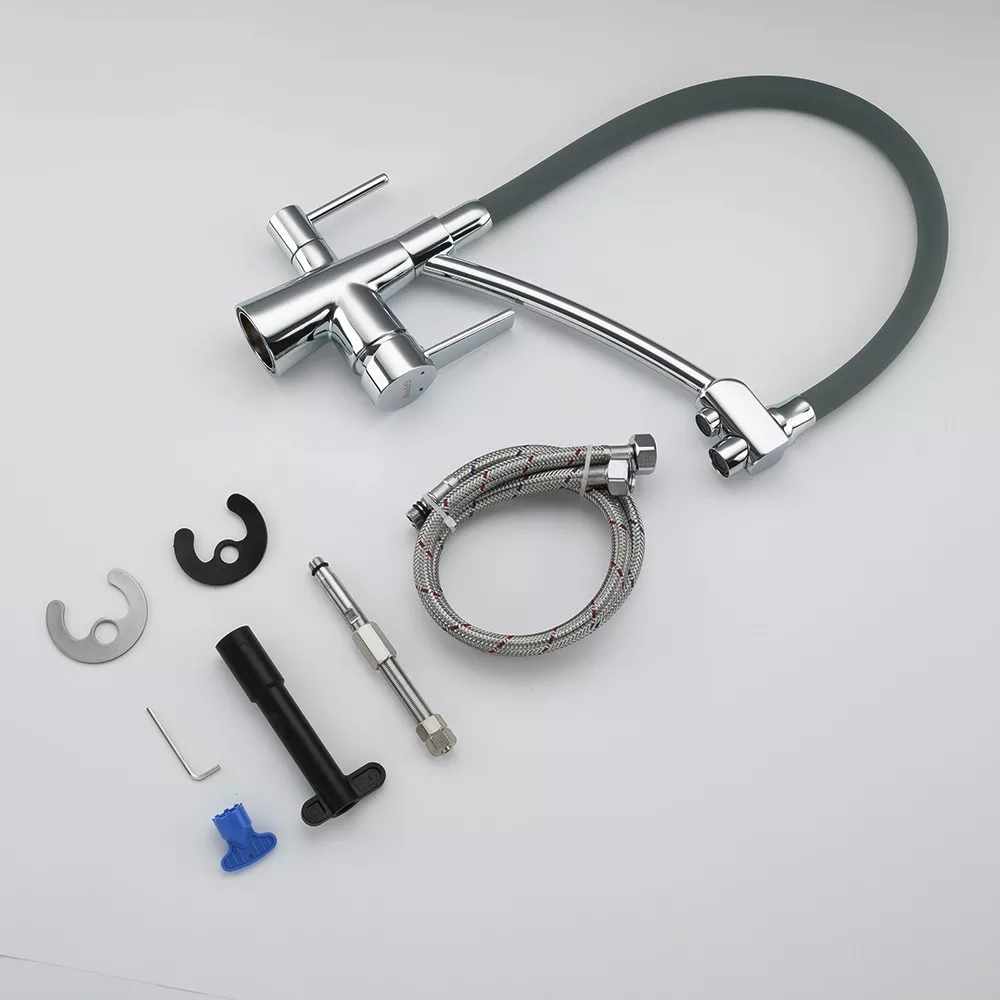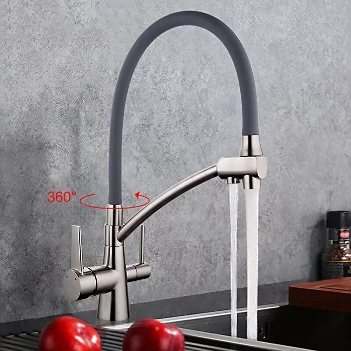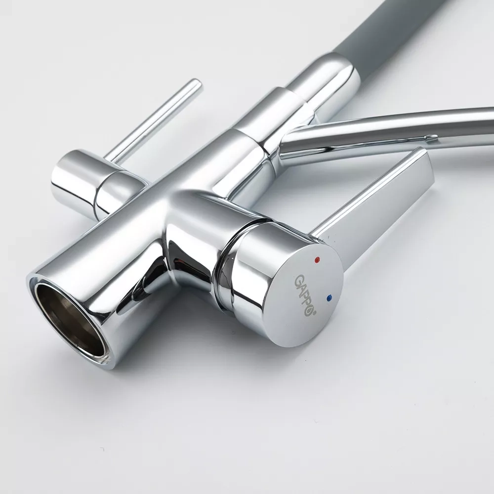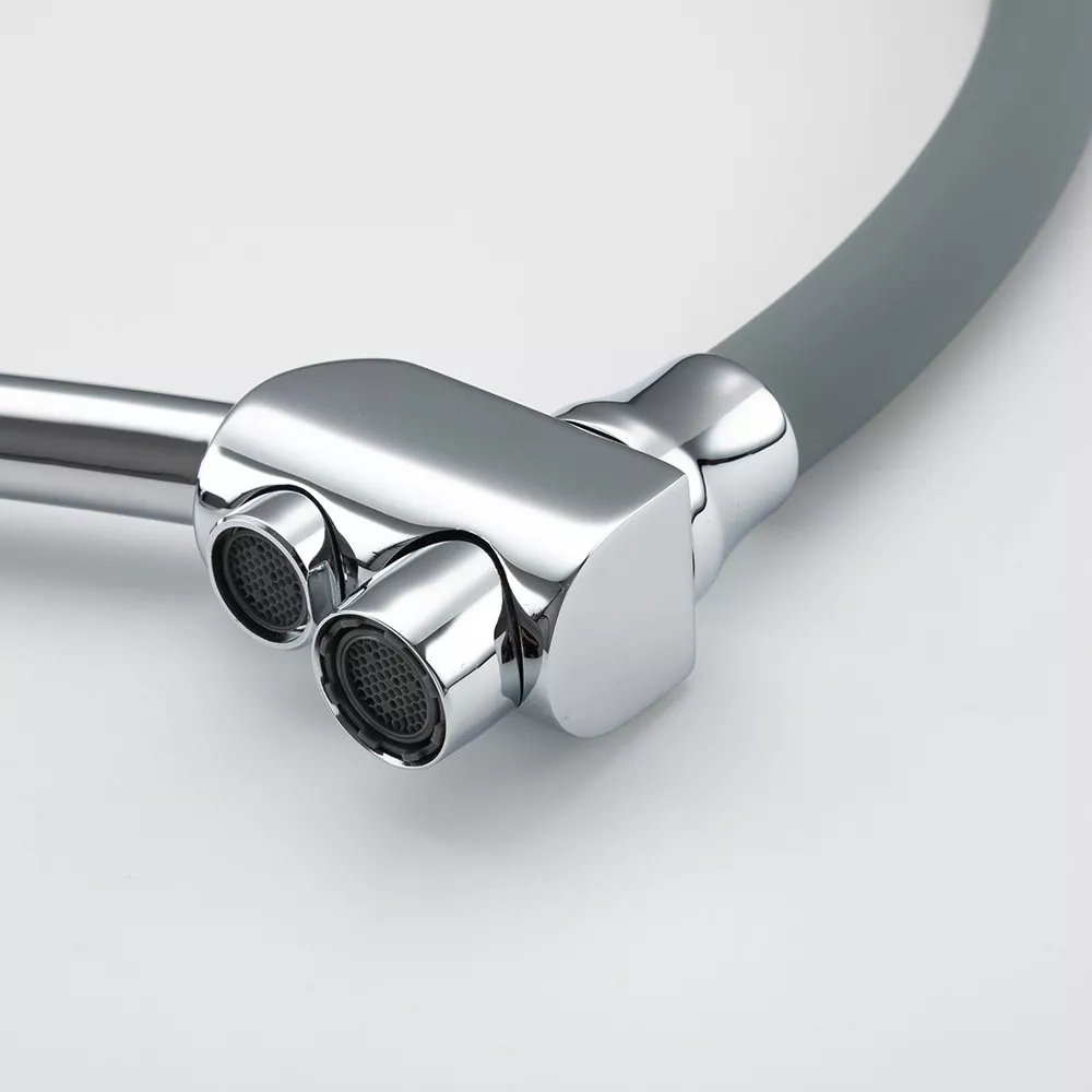 Змішувач для кухні на дві води GAPPO G4398-17 з гнучким виливом, сірий/хром