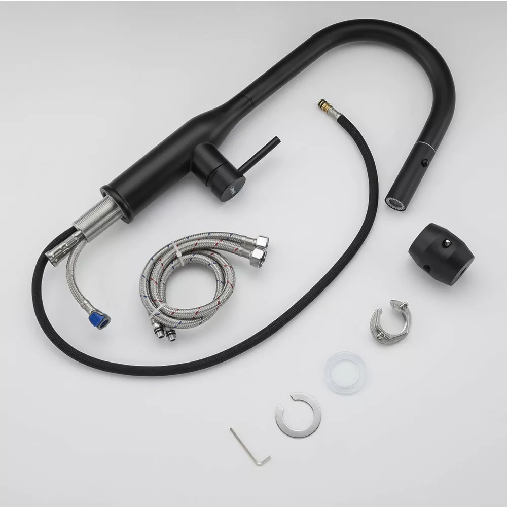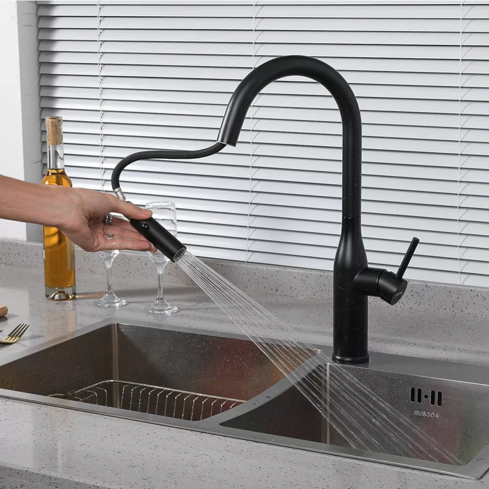 Змішувач з висувним виливом для кухні GAPPO G4398-46, 2 режими, чорний