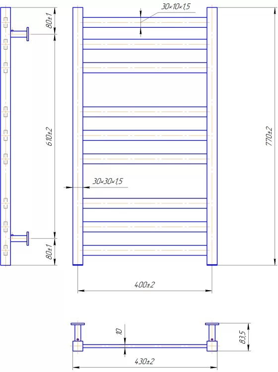 Водяна рушникосушарка INOX Чикаго 770х430/400 полірована