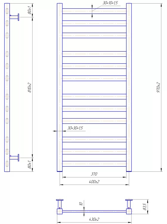 Водяна рушникосушарка INOX Чикаго 970х430/400 полірована