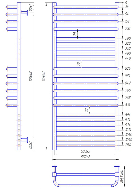 Водяна рушникосушарка INOX Гера-Люкс 1170х530/500 полірована