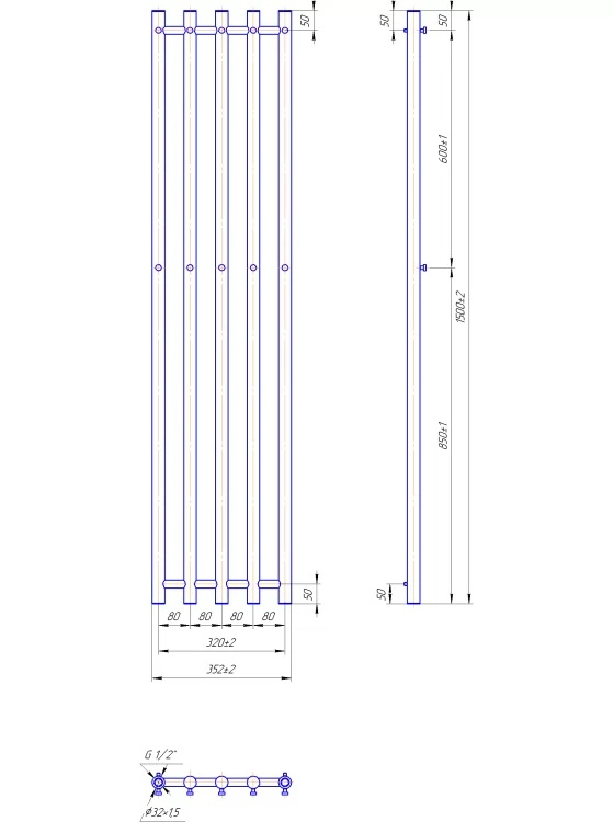 Водяна рушникосушарка INOX Туб 1500х352/320 полірована