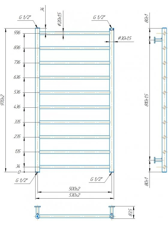 Водяна рушникосушка INOX Флет 970х530/500 полірована