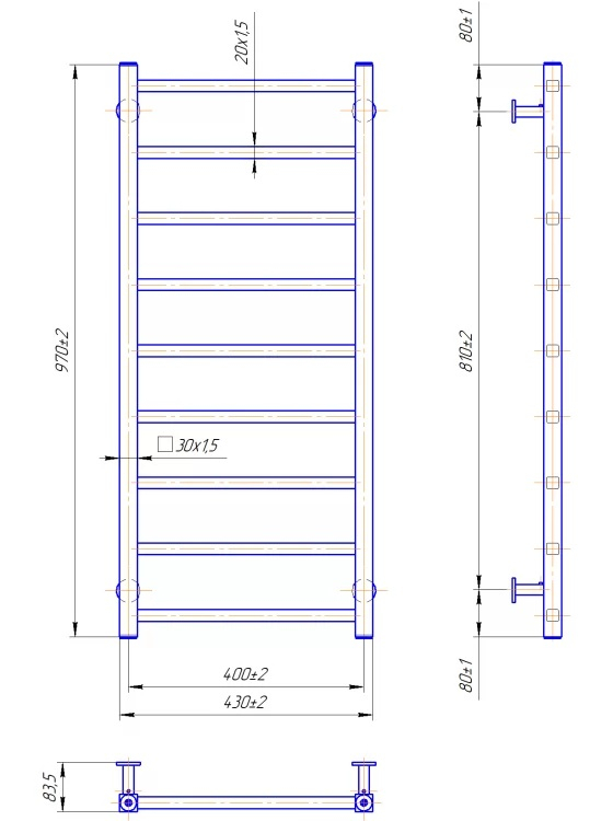 Водяна рушникосушка INOX Токіо 970х430/400 полірована